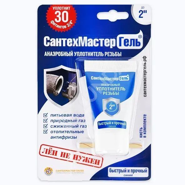 Гель СантехМастер Синий, тюбик 60 г — это резьбовой герметик для сантехники со средней степенью фиксации соединения. Данный состав рекомендован к использованию для герметизации металлических резьб, фитингов и фланцев. Используется для соединений диаметром до 2".