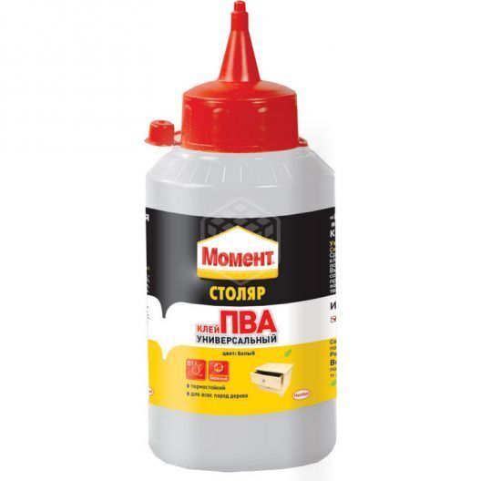 Универсальный клей МОМЕНТ Столяр ПВА 750 г на основе водной дисперсии ПВА, подходящий для всех пород дерева.