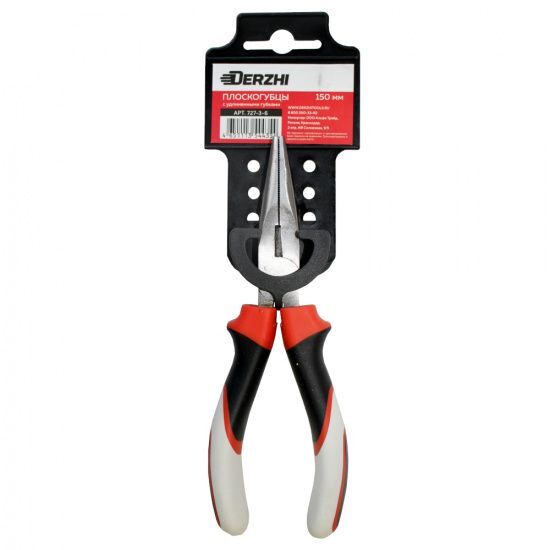 Плоскогубцы Derzhi, с удлиненными губками, 150 мм предназначены для быстрого монтажа и демонтажа различного крепежа или иных деталей. Среди особенностей изделия можно отметить простую и в то же время надёжную конструкцию плоскогубцев, которая способствует повышению эксплуатационного ресурса инструмента. Основное предназначение данной модели заключается в работе с мелкими элементами в труднодоступных местах. Этому способствует специальная удлинённая конструкция губок, за счёт которой можно выполнять сложные операции с крепежом малого размера. Удобству использования служат комфортные эргономичные рукоятки, выполненные из трехкомпонентного материала.