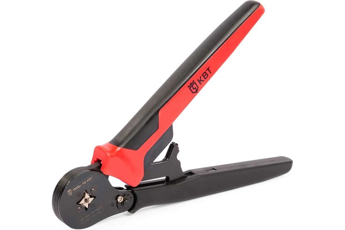 Пресс-клещи КВТ ПКВк-16 54549 находят свое применение в профессиональной сфере деятельности для опрессовки коннекторов только на многожильных медных проводах. Инструмент подходит для работы с втулочными наконечниками в диапазоне сечений НШВИ, НШВ: 6.0–16 мм² и НШВИ(2): 2х4.0–2х6.0 мм². На все типоразмеры диапазона предусмотрена одна саморегулирующаяся матрица.