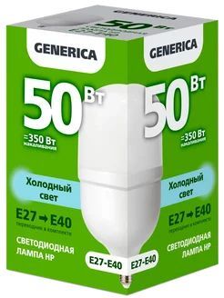 Лампа GENERICA LL-HP-50-230-65-E27-E40-G представляет собой светодиодную лампочку, предназначенную для потолочного освещения. Лампа имеет заменяемый цоколь E27 и E40 и работает от переменного тока с напряжением 230 В. Она осветит ваше помещение ярким белым светом, благодаря световой температуре 6500 К. Лампа не оснащена регулятором яркости, но обладает индексом цветопередачи 80-89 (класс 1В), что гарантирует достоверное отображение цветов. Диаметр лампы составляет 118 мм, а ее длина - 168 мм. Лампочка имеет защиту от пыли и влаги IP20 (установка только внутри помещений) и обладает средним номинальным сроком службы 15000 часов.